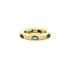 This elegant band ring features multiple emeralds, adding a subtle yet striking pop of color. Its simple design allows the vibrant stones to stand out, perfect for everyday wear or special occasions.