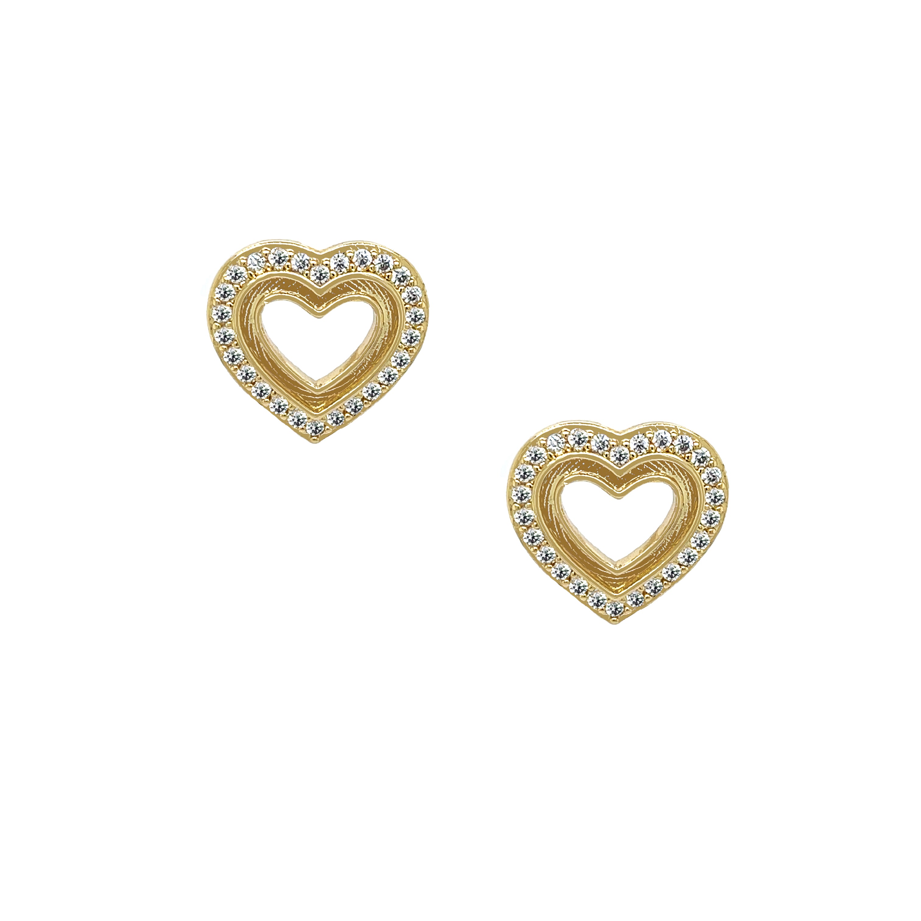 CZ Ridged Heart Outline Stud Pierced Earrings