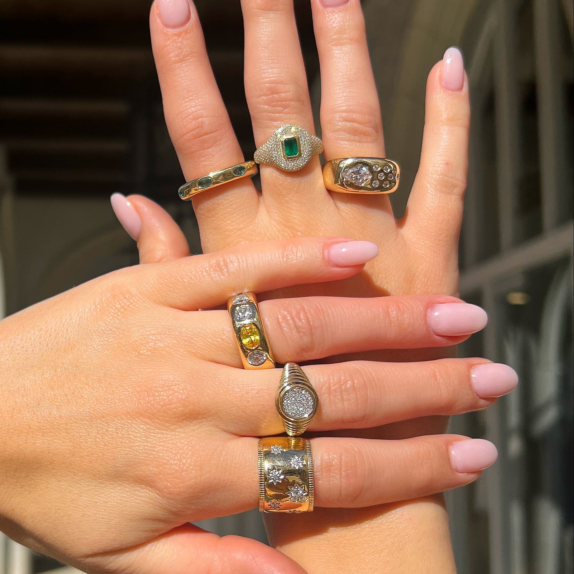 14K Gold Pave Diamond Band with Baguette Emerald Ring